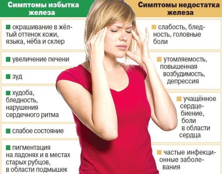 Избыток железа может накапливаться в органах, приводя к нарушению их работы и возникновению заболеваний. Особенно этому подвержены печень, сердце и поджелудочная железа. Слишком много железа может привести к опасным для жизни состояниям, таким как цирроз печени, сердечная недостаточность и сахарный диабет.