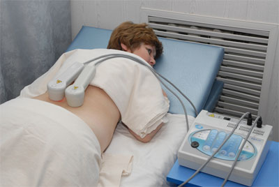 - Электротерапия. Простоя процедура, в процессе которой на пораженные остеохондрозом области позвоночника воздействуют электрическим полем. В результате кровообращение в проблемном месте увеличивается, но такая процедура воспрещена людям, у которых имеются металлические изделия в теле (кардиостимулятор, металлический сустав).