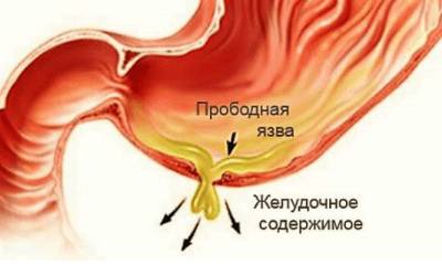 При данной патологии возникает сквозной дефект в желудочной стенке.