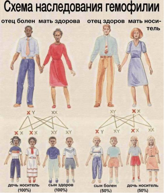 Таким образом, сама женщина является носителем, но не болеет, в то время как мужчина подвержен данному заболеванию, но не способен его передавать потомкам.