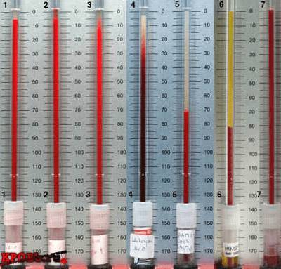 В течение часа пробирка находится на специальной подставке, которую не желательно трогать и передвигать, иначе осадок поднимется вверх, а результат станет неинформативным. Красные кровяные тельца тяжелее остальных элементов, поэтому оседают на дно, образуя осадок багрового цвета. Верхний слой – жидкая часть крови (плазма) и буферный слой форменных элементов.