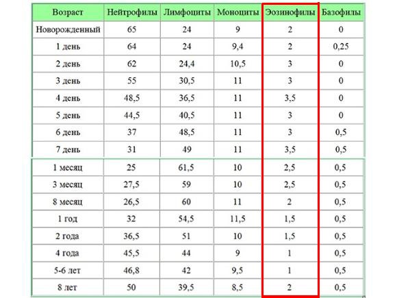 Повышение уровня эозинофилов (эозинофилия) может быть признаком различных заболеваний. Наиболее распространенные причины эозинофилии у детей: аллергические заболевания: пищевая аллергия, атопический дерматит, аллергический ринит, бронхиальная астма; паразитарные инфекции: гельминтозы (острицы, аскариды), лямблиоз.