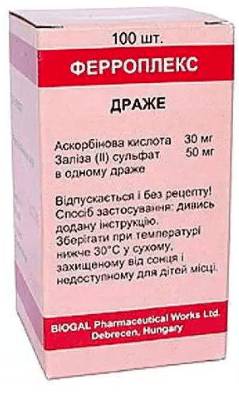 Таблетки с сульфатом железа и аскорбиновой кислотой.