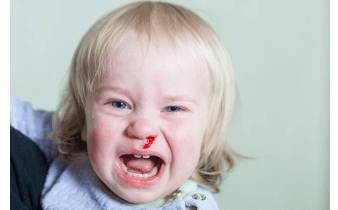 Носовые кровотечения могут быть вызваны многими факторами, такими как сухой воздух, ковыряние в носу, травмы, приём лекарств и аллергии. Во многих случаях конкретная причина носового кровотечения не обнаруживается. Посадите ребёнка и наклоните его вперёд. Не укладывайте ребёнка в постель и не запрокидывайте голову назад.