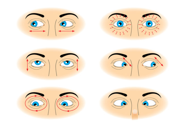 - Не двигая головой отведите взгляд максимально влево, затем вправо, вниз и вверх. Повторите 2-3 раза;