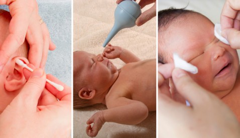 - Нос и остальную часть лица, в том числе и заушное пространство также нужно очищать при помощи ватных тампонов, предварительно смоченных в кипяченой воде.