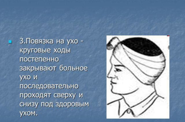 После прекращения кровотечения рекомендуется обработать пораженный участок антисептиком и наложить на него бинт (повязка не должна быть тугой). Если кровь длительное время не останавливается, можно попробовать приложить к уху лед.