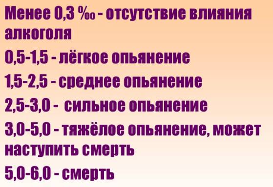 - Граница с 1,5 до 2,5% считается средней степенью опьянения;