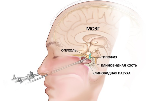 Операция по удалению образования в гипофизе осуществляется через носовые пазухи.