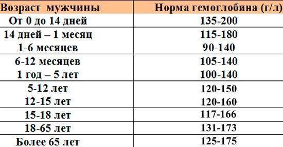 Нормой этого компонента в крови считается уровень от 140 до 160 г/л. У мужчин по возрасту гемоглобин меняется
