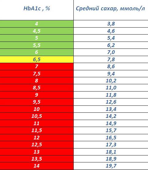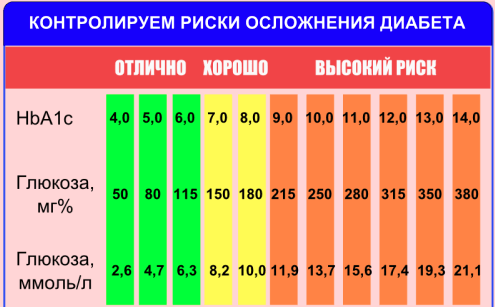 Соответственно рекомендациям организаций здравоохранения разных стран (Американской диабетической ассоциации, Всемирной организации здравоохранения) у пациентов с подтвержденным СД уровень гликированного гемоглобина 4,5-7 % указывает на хорошую компенсацию сахарного диабета, уровень 7-8,5 % свидетельствует о.