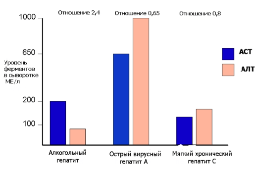 Общепринятым в медицинской практике является диагностирование заболеваний при помощи коэффициента де Ритиса.