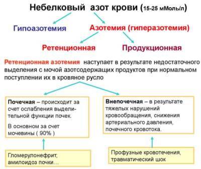 Повышенное содержание остаточного азота в крови бывает при азотемии, но не менее опасны пониженные значения, это возможный признак гипоазотемии.