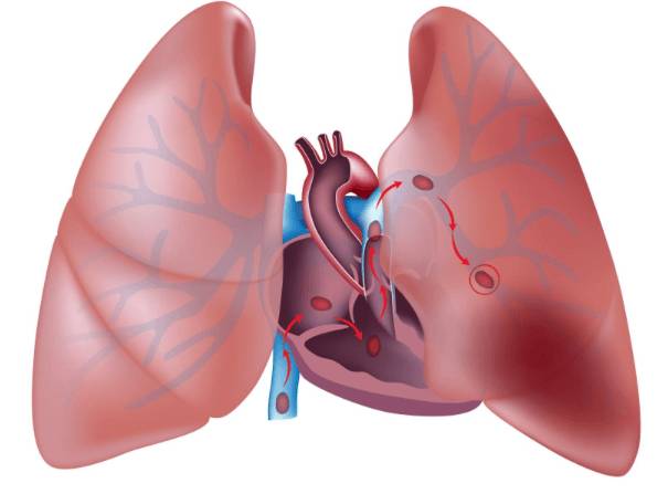 Тромб в лёгких — это тяжёлая патология. Тромб закупоривает сосуды, нарушает кровоток и приносит вред всему организму, провоцируя тромбоэмболию артерии лёгких.