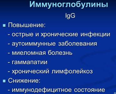 Если по результатам анализа иммуноглобулин G снижен, это говорит о таких патологиях: