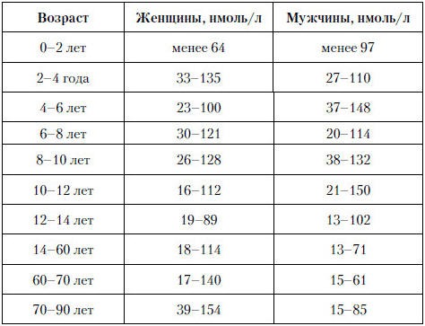 - У мужчин: 100-265 мкг/л;