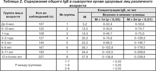 Для детей разного возраста, а также взрослых показатели нормы IgE варьируются:
