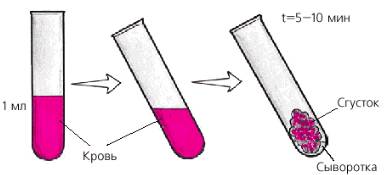 В пробирку помещают 1 мл венозной крови, держат при температуре 37 градусов. За образованием сгустка следят, периодически наклоняя пробирку.