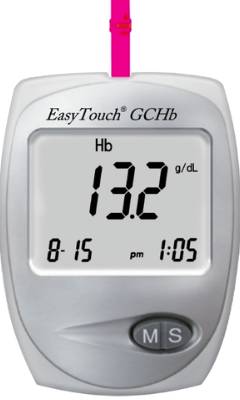 Одноразовое самотестирующее устройство использует химический реагент, который производит видимые изменения цвета, соответствующие разным уровням гемоглобина.
