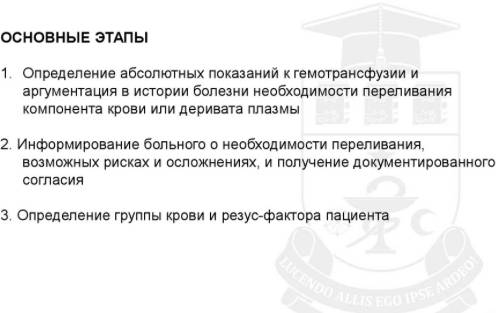 Этапы гемотрансфузии