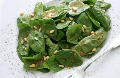 - Свежая зелень, особенно шпинат и зеленый салат.