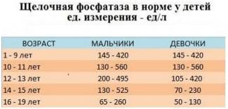 После года и до возраста 3 лет у ребёнка нормальный уровень фосфатазы составляет 281 единицу, а для малыша в возрасте от 4 до 6 лет нормой считается 269 единиц.
