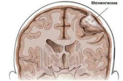 - Менингиома – новообразование, формирующееся из клеток менинготелия. Может достигать внушительных размеров, а также перерождаться в злокачественные новообразования.