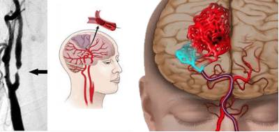 - Церебральная ангиография. Это рентгенологический метод исследования сосудов мозга с помощью введения контрастного вещества в сосуды, позволяет выявить локализацию, степень и распространенность нарушений в сосудах, проанализировать состояние кровоснабжения и оттока крови в тканях.