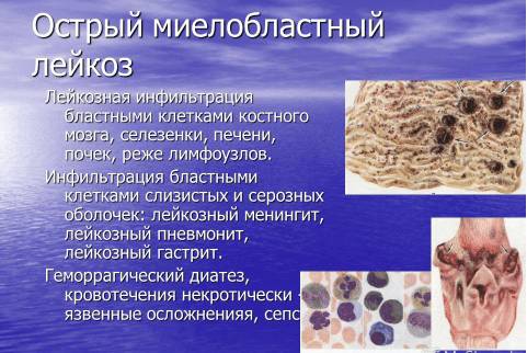 Что характерно для острого миелобластного лейкоза?