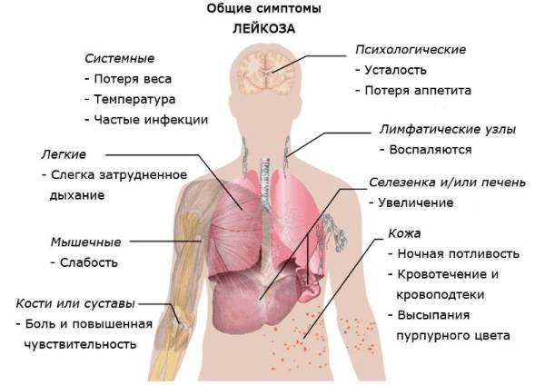 Стоит рассмотреть симптомы острого и хронического лейкоза.