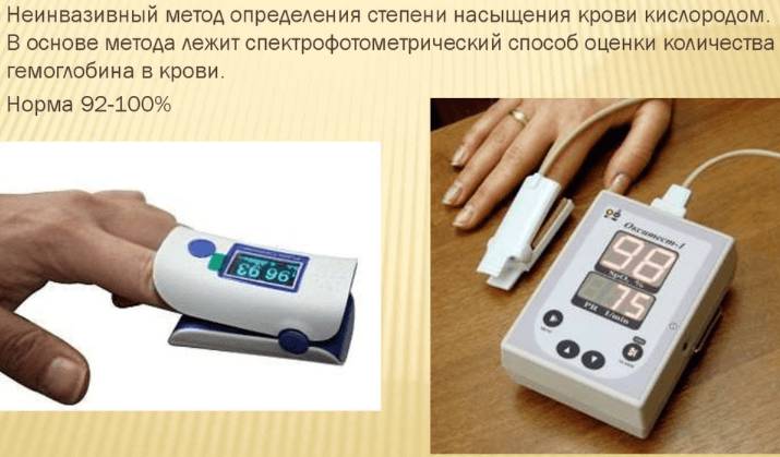 Пациенту делают пульсоксиметрию, чтобы определить насыщение гемоглобина кислородом.