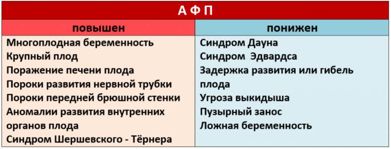 Если показатель АФП во время беременности упал или не поднялся до нужного уровня, то у плода могут быть следующие проблемы: