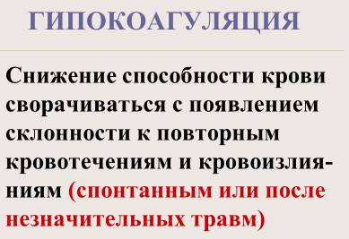 Гипокоагуляционный синдром – собирательное понятие, объединяющее различные патологические состояния, которые проявляются увеличением времени свертываемости крови.
