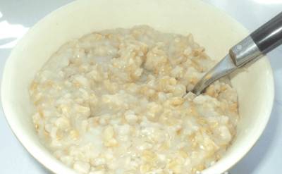 - Овсяная каша с ломтиками хурмы. Кофе.