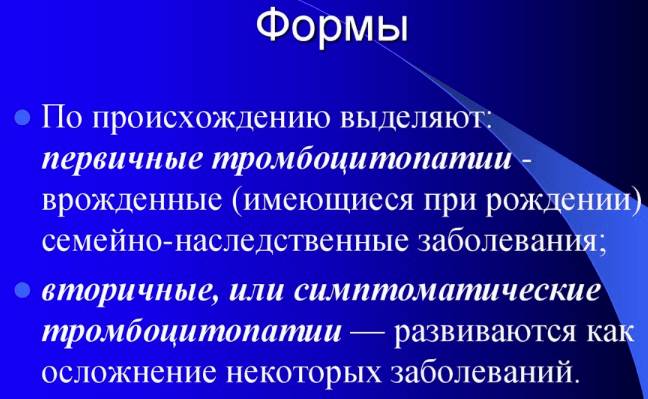 - Дизагрегационная форма. При ней происходит нарушение агрегации тромбоцитов.
