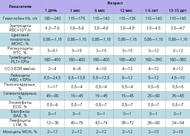 Уровень гемоглобина в детском возрасте значительно отличается в зависимости от возраста. Показатель у новорожденного будет значительно выше, чем когда ребенку 2 года, три, годик или пять лет. Это объясняется накоплением железа еще в утробе матери. Спустя две недели показатель начинает падать и к концу первого месяца достигает минимума. Ниже представлена норма гемоглобина у малышей разных возрастов. Количество меньше нижней отметки говорит о том, что у ребенка низкий уровень гемоглобина.